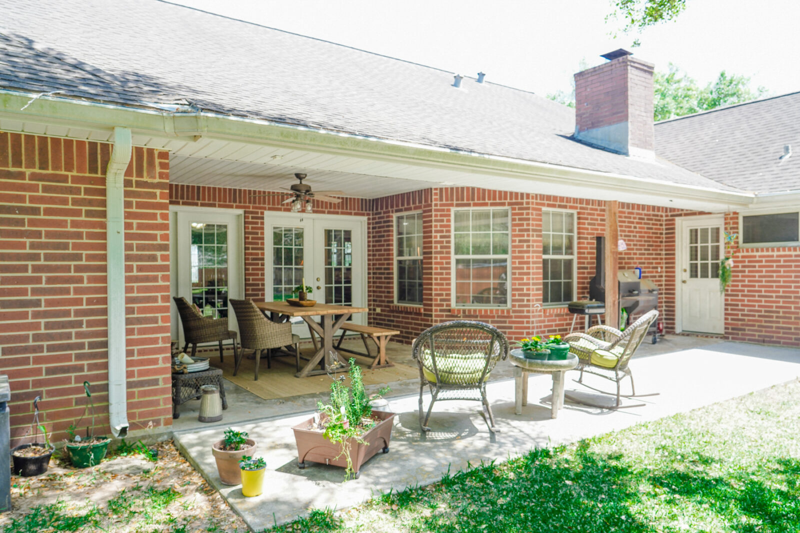 Upon entering, you will find the living room in the center of the split floor plan. Toward the back, you will find a gorgeous set of French doors that open onto the back covered porch and offer beams of natural lighting into the home.