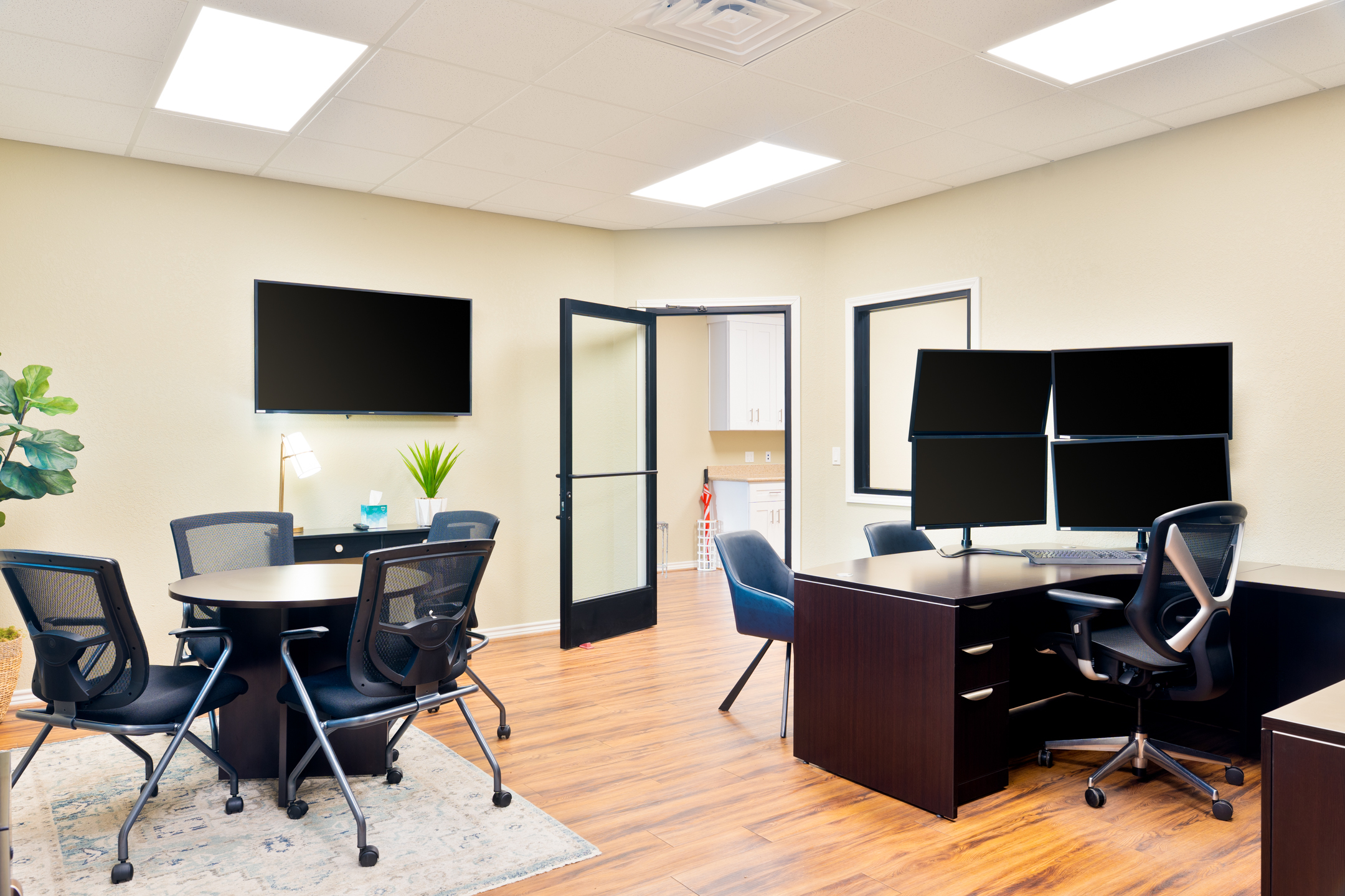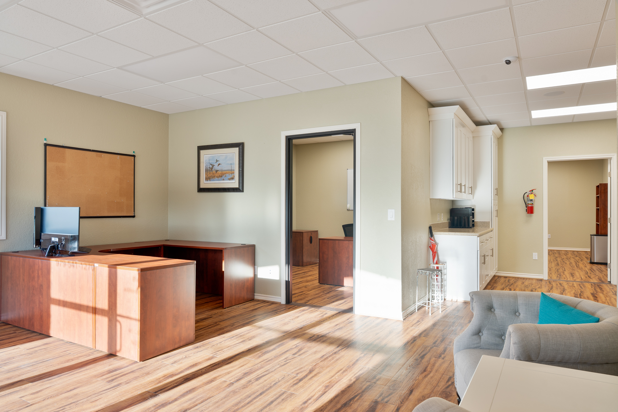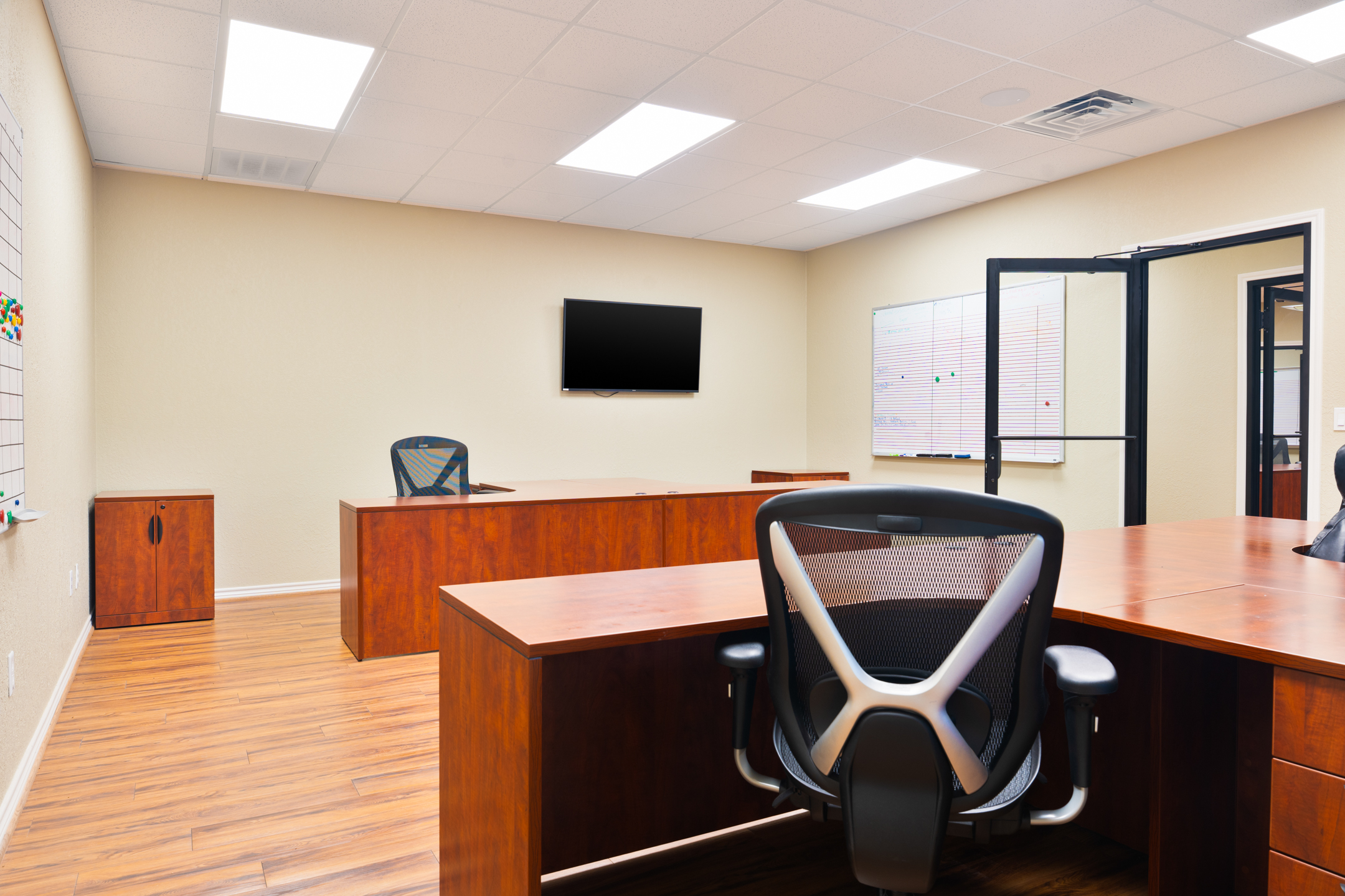 - 10 office spaces. 2 large enough to fit multiple work stations