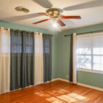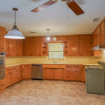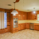 The kitchen features abundant counter space alongside custom original cabinetry that offers plenty of room for storage. Just off the dining area is the mudroom that features a full bathroom with a standing shower and exits to the double car garage and back patio.