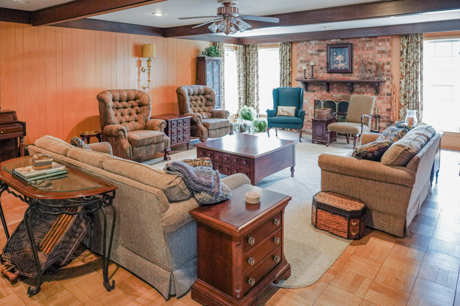 The large kitchen features serving windows that over looks the breakfast nook and the family room. There is a small prep sink perfectly placed along the opening to the family room, which makes for a fun and easy way to serve food, beverages, and cocktails to your family and friends.
