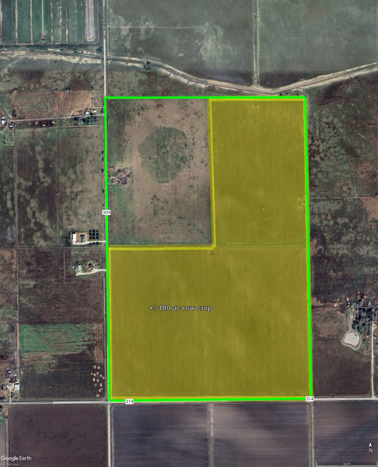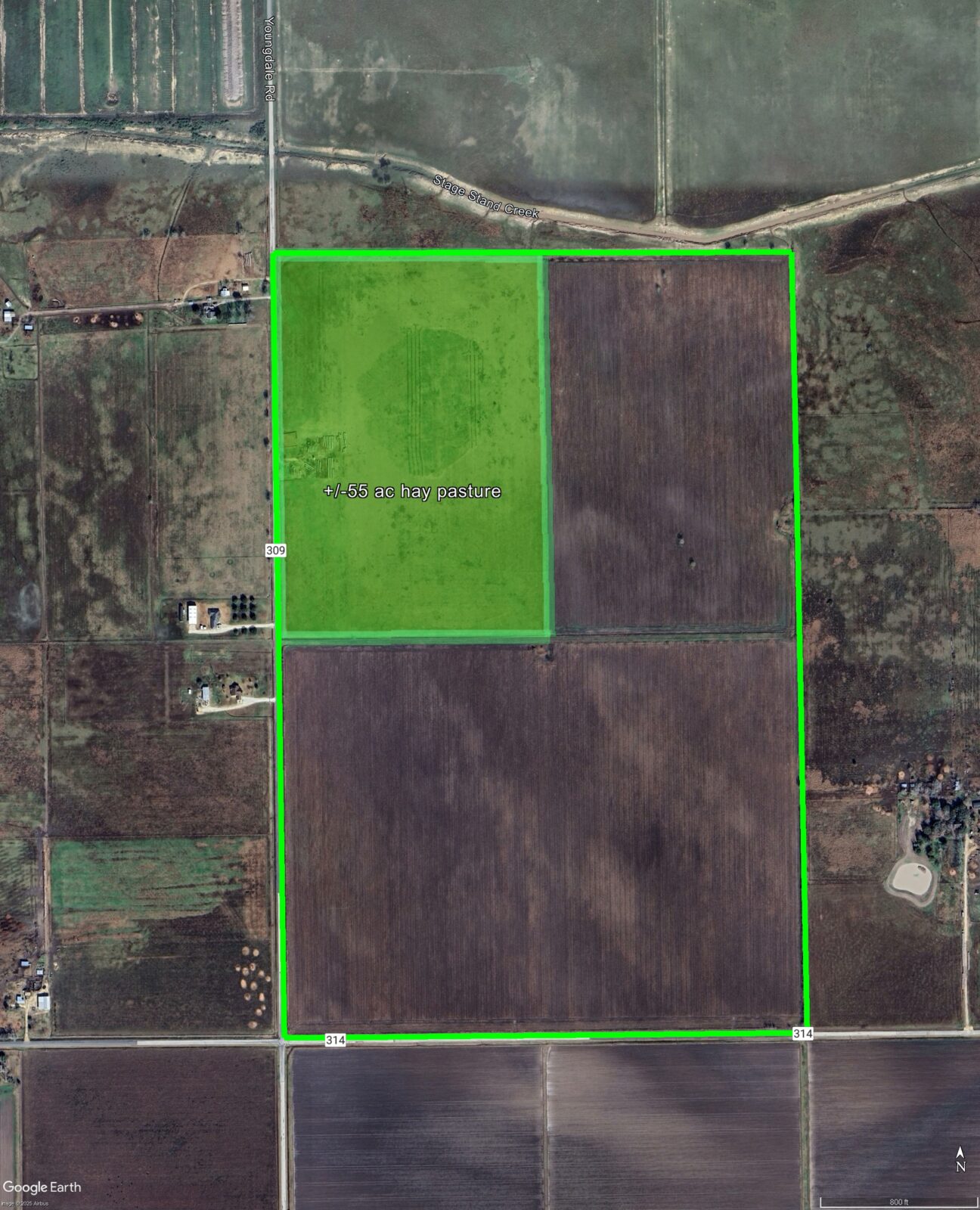 The property is perimeter fenced, has power at the road, and includes an old homesite under the shade of mature trees — a perfect spot for someone looking to build their forever home and keep the rest in ag.